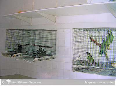 Les laisser choisir leur partenaire est vraiment le top mais ce n'est pas si facile! Cela implique une grande volière où l'on enferme autant de mâles que de femelles et les marquer pour les reconnaitre! Ensuite dès qu'une paire se fait, les sortir et les mettre ensemble au même moment dans la volière où ils se reproduiront et ainsi de suite jusqu'à la dernière paire. Dans cette dernière le nid doit se trouver dans une partie tranquille, privée et protégée des intempéries et de la vue des autres perroquets pour assurer la meilleure couvaison possible. De grandes volières de 5 à 7 mètres de long pour les grandes espèces, jusqu'à 4 mètres de long pour les Amazones et Gris et des cages suspendues pour les plus petits. Les bols d'eau et les plats étaient glissés et retenus à l'opposé des nids sous couvert, dans des espaces dont le grillage était recourbé afin d'empêcher les oiseaux joueurs de les renverser!