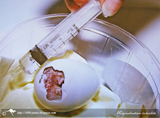 Les œufs étaient marqués et mirés avec une torche quotidiennement pour nous assurer que l'embryon se portait bien. Si ce dernier ne progressait plus, c'est qu'il était mort et il fallait le retirer rapidement pour ne pas affecter les autres œufs. Ils étaient pesés chaque jour, et leur poids reporté dans un cahier.