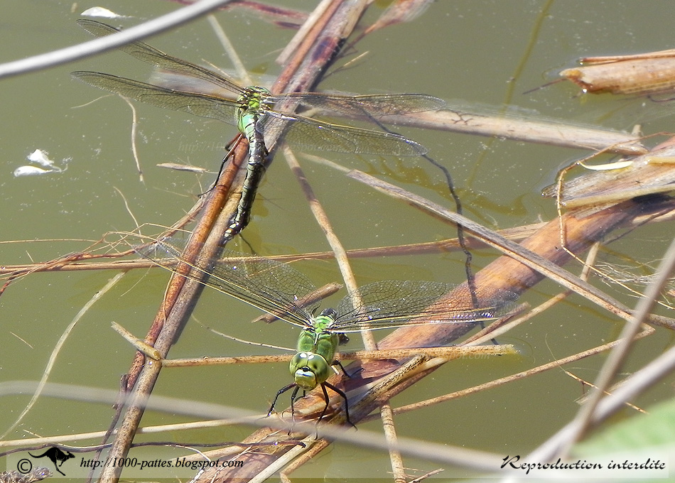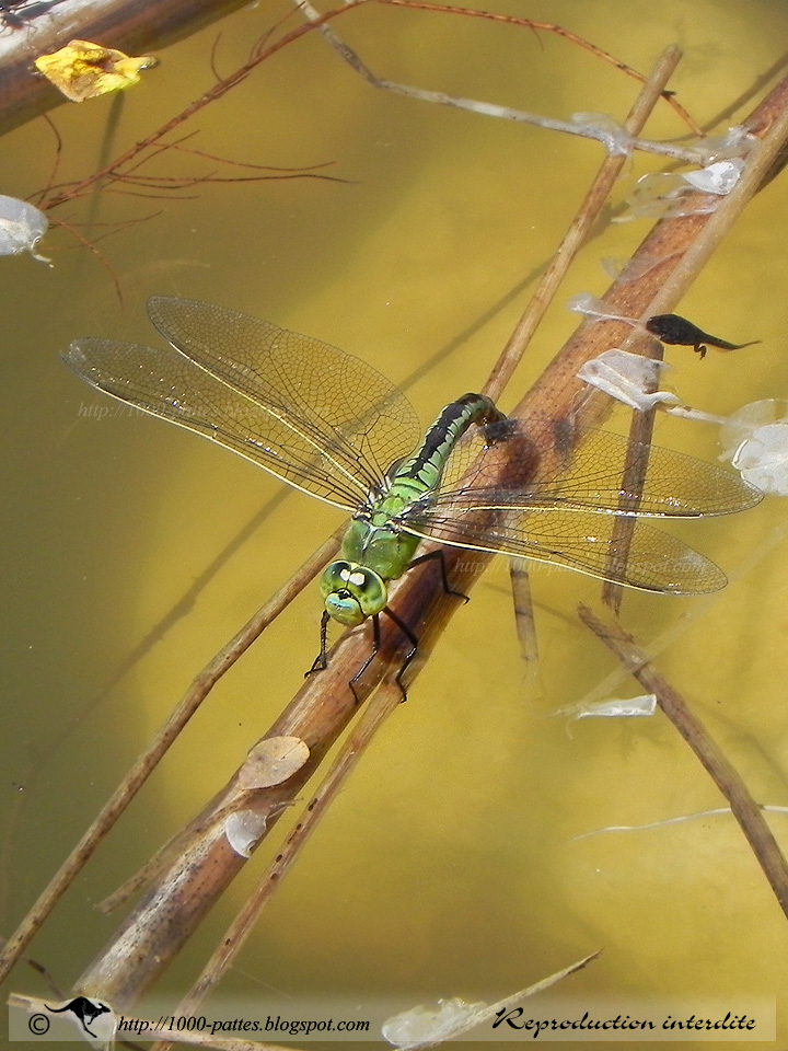 plusieurs femelles virevoltent pour venir pondre dans la végétation en