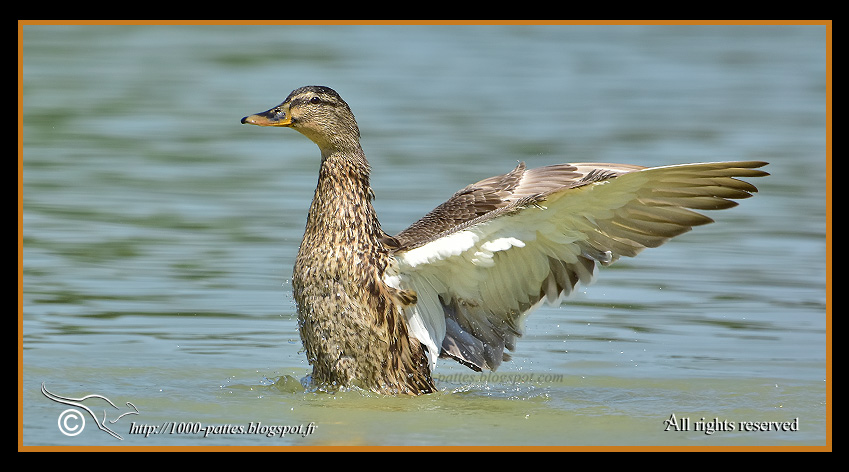 femelle hybride colvert X Chipeau(?), en couple à présent avec un beau mâle colvert. Etant arrivée au lever du soleil, les reflets des arbres ajoutent une certaine harmonie aux images.