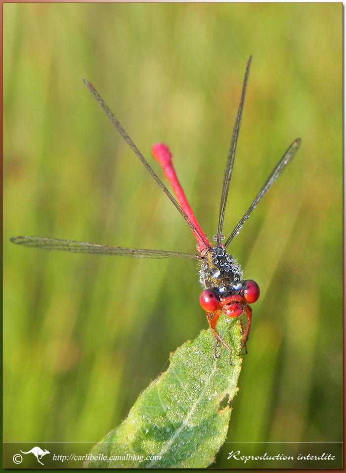 Le Cériagrion délicat: cœur copulatoire photographié sur la bruyère en bordure: