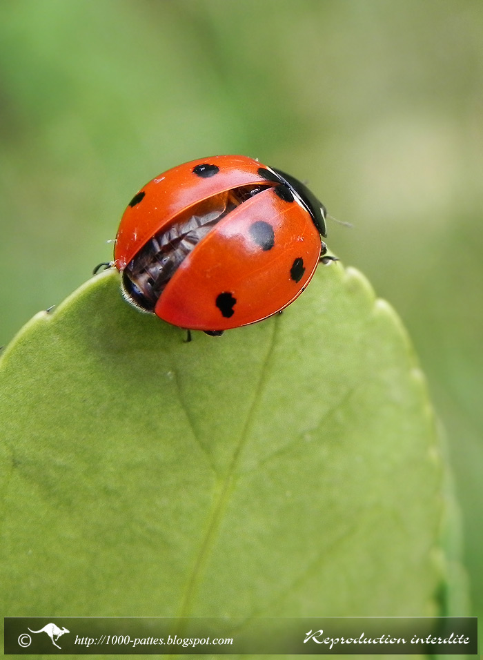 Nos bien connues et bien sympathiques Coccinelles à 7 points! Ici, elles ont fait lit commun! C'est la première fois que j'ai l'occasion d'en photographier 3 ensemble mais ce ne doit pas être rare quand elle se mettent à hiberner!