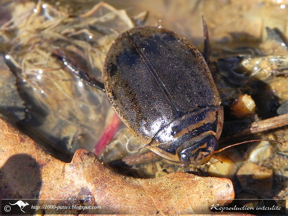 Arthropode terrestre de 15 mm environ, à respiration trachéenne, on le trouve dans les eaux stagnantes (plans d'eau : lacs, étangs, mares, etc...). Les Insectes aquatiques adultes ont trois choix pour respirer:- remonter à la surface pour "prendre de l'air" : bulles mises en contact avec les trachées dans l'espace sous-élytral comme pour les Dytiques.