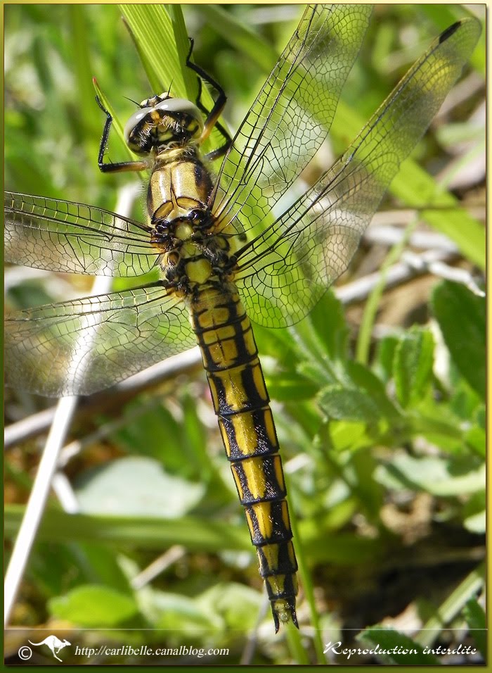 Chez certaines espèces, les mâles eux vont carrément changer leurs couleurs comme par exemple Orthetrum cancellatum, Libellula depressa ou encore L. fulva qui virent du jaune au bleu.