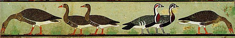 On les trouve sur la fameuse peinture murale du tombeau de Nefermaât, IVème dynastie: c'est une des plus anciennes représentations d'oies.