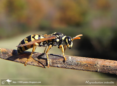 Le nid des frelons n'était pas bien loin et j'en voyais plusieurs tourner autour des Lestes... J'avais bien espéré que ce serait cette proie qu'il choisirait, le document n'en aurait été que plus intéressant !!...