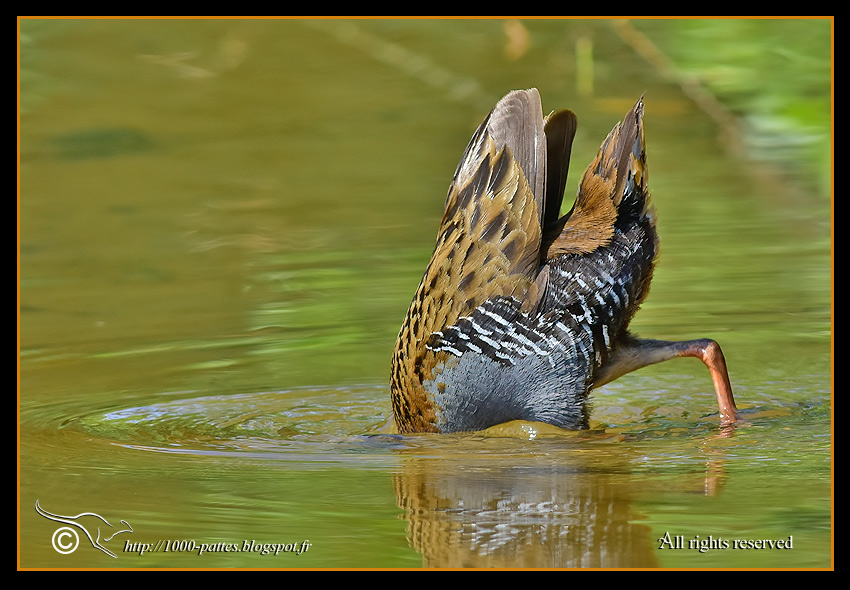 The Rail came out around 4h30 in the afternoon; I had been in the hide for 2 hours with nothing interesting to photograph when a couple of tourists waltzing in making a lot of noise as the bird appeared. I just had the time to take these shots: